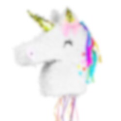 Superschöne Piñata geformt wie ein Einhornkopf. Die Piñata macht Spaß auf der Kinderparty und kann mit Süßigkeiten und kleinen Spielzeuge gefüllt werden. Größe etwa 40 x 32 x 9,5 cm.
