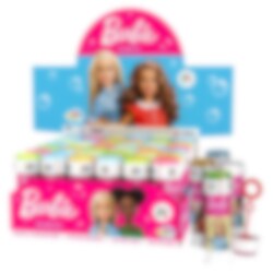 Seifenblasenflaschen mit bunten Motiven von Barbie. Seifenblasen sind beliebt als Geschenk bei Kinderfesten und es macht Spaß, zusammen Bubble zu blasen. Der Preis ist pro Stück und die Flasche enthält 60 ml.