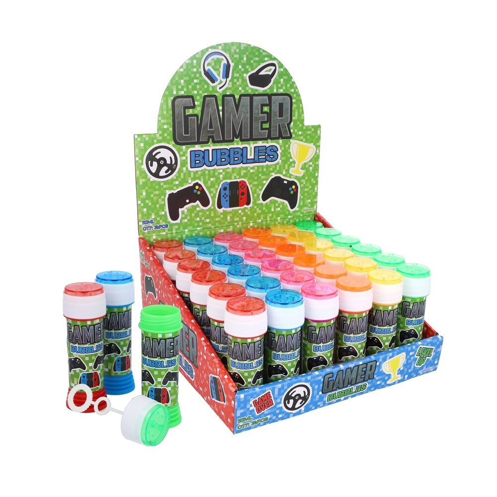 Seifenblasen, wo die Flasche Motive von coolen Gaming-bezogenen Dingen hat. Seifenblasen sind beliebt als Geschenk bei Kinderfesten und es macht Spaß, zusammen Bubble zu blasen. Der Preis ist pro Stück und die Flasche enthält 50 ml.