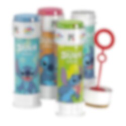 Seifenblasenflaschen mit bunten Motiven von Lilo & Stitch. Seifenblasen sind beliebt als Geschenk bei Kinderfesten und es macht Spaß, zusammen Bubble zu blasen. Der Preis ist pro Stück und die Flasche enthält 60 ml.