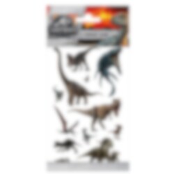 12 Tattoos mit Motiven von Dinosauriern aus den Jurassic World-Filmen. Eine lustige Überraschung, die man für die Dinosaurier-Kinderparty in die Geschenktüten stecken kann.