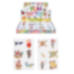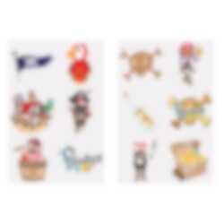 6 Tattoos mit verschiedenen Piratenmotiven. Verschenken Sie ein paar davon in Geschenktüten, wenn es Zeit für eine Piratenparty ist. Bitte beachten Sie, dass die Tattoos auf zwei verschiedenen Bögen sind und einzeln und unsortiert verkauft werden.