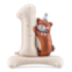 Dieser schöne, freistehende Folienballon stellt die Zahl 1 dar, die von einem süßen Teddybär umarmt wird. Perfekt, um eine festliche und charmante Atmosphäre für den ersten Geburtstag zu schaffen!