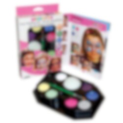 Set med många delar som du kan använda för att skapa kreativa ansiktsmålningar med. Förpackningen innehåller 5 st. 2 ml. vanliga ansiktskulörer, 1 st. 2 ml metallic ansiktskulör, 2 st. 2 ml sparkle ansiktskulör, 1 st. sminksvamp 1 st pensel och en enkel step-by-step instruktion. Snazaroo ansiktsfärger är av hög kvalité, de är dryga och framförallt säkra då de är helt giftfria.