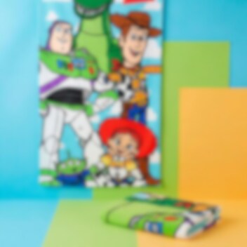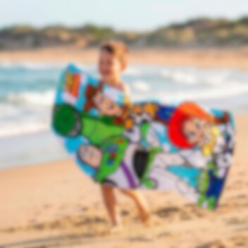 Nehmen Sie die ganze Bande aus Toy Story mit an den Strand oder in den Pool! Dieses bunte Badetuch ist mit Buzz Lightyear, Woody, Jessie, Rex und einem der kleinen Aliens bedruckt. Es ist ideal für alle Fans, die sich nach dem Baden stilvoll abtrocknen möchten.