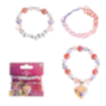 Drei hübsche Armbänder in leuchtenden Farben mit Motiven der beliebten Disney-Prinzessinnen. Eine tolle Ergänzung für jede kleine Modebegeisterte und ihre Accessoire-Sammlung. Ideal, um jedem Outfit einen farbenfrohen und verspielten Akzent zu verleihen. Kindergröße.