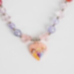 Hübsche Halskette in Rosa und Lila mit Perlen, Schleifen und Sternen – und einem herzförmigen Anhänger mit beliebten Disney-Prinzessinnen. Ein niedliches Accessoire, das jedes Outfit kleiner Modefans perfekt ergänzt. Ideal für Geburtstage, Verkleidungsspiele oder einfach für den Alltag mit etwas Glanz.