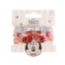 Drei hübsche Armbänder in fröhlichen Farben mit Motiv von Minnie Maus. Eine tolle Ergänzung für jede kleine Modebegeisterte, die ihre Accessoire-Sammlung erweitern möchte. Ideal, um jedem Outfit einen spielerischen und bunten Akzent zu verleihen. Kindergröße.
