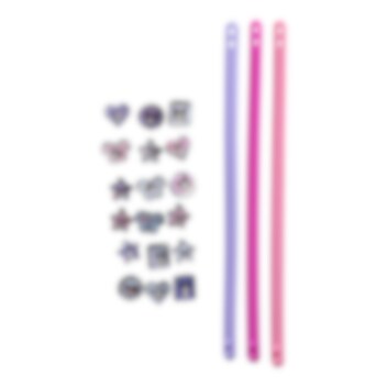 Das Set enthält drei Armbänder und ganze 18 Charms mit verschiedenen Kuromi-Motiven, die einfach aufgefädelt werden, um immer wieder persönliche Armbänder zu kreieren.