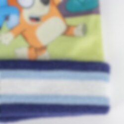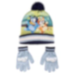 Machen Sie den Winter fröhlicher mit diesem niedlichen Bluey-Set! Die grüne Mütze mit Bommel zeigt Bluey und Bingo beim Spielen, während die hellblauen Handschuhe mit dem Bluey-Logo verziert sind. Ein tolles Set für kleine Fans der beliebten Serie.