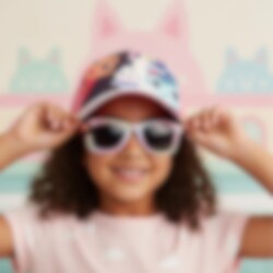 Ein farbenfrohes Set mit Kappe und Sonnenbrille im Gabby's Dollhouse-Design, perfekt für sonnige Tage und das Spielen im Freien. Die Motive machen das Set zum Favoriten bei kleinen Fans.