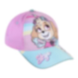 Wunderschöne Kinderkappe in rosa und türkis mit dem niedlichen Welpen Everest von Paw Patrol. Die Kappe besteht aus 65% Baumwolle und 35% Polyester.