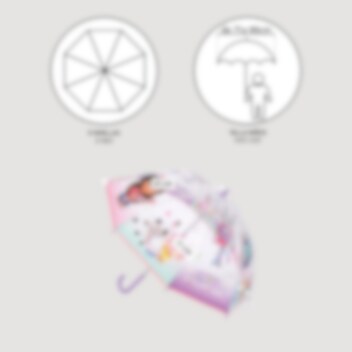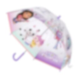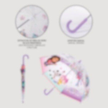 Er hat 8 Streben und öffnet manuell. Mit seinem stilvollen Design mit Gabbys Dollhouse als Motiv wird dieser Regenschirm ein Favorit aller kleinen Fans der Serie.