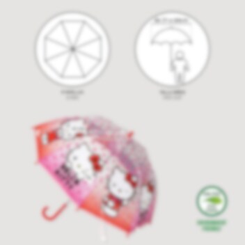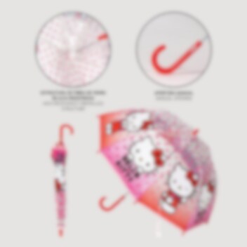 Machen Sie Regentage besonders charmant mit diesem niedlichen Kinderregenschirm mit Hello Kitty! Der Schirm hat einen Durchmesser von ca. 71 cm und besteht aus robustem PoE und Fiberglas. Er verfügt über 8 Streben und wird manuell geöffnet. Das farbenfrohe Design mit Hello Kitty macht den Schirm zu einem Favoriten bei allen kleinen Fans der beliebten Figur.