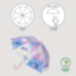 Machen Sie Regentage magischer mit diesem farbenfrohen Kinderregenschirm mit Stitch aus Lilo & Stitch! Der Schirm hat einen Durchmesser von ca. 71 cm und besteht aus robustem PoE und Fiberglas. Er verfügt über 8 Streben und wird manuell geöffnet. Mit seinem verspielten Design mit Stitch wird dieser Schirm schnell zum Favoriten bei allen kleinen Fans des Films.