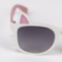Premium Sonnenbrillen für Kinder mit süßen Details und Motiven aus Gabby's Dollhouse. Auf den Bügeln um die getönten Gläser befinden sich Gabby-Motive auf beiden Seiten.
