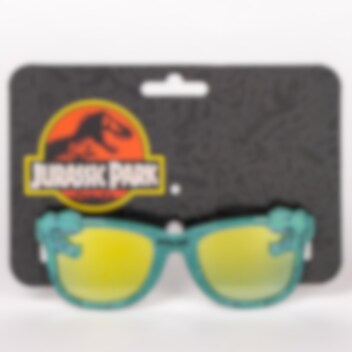 Premium-Sonnenbrille für Kinder mit coolen Details aus Jurassic Park. Die fein gemusterten Rahmen um die getönten Gläser zeigen auf jeder Seite einen T-Rex.