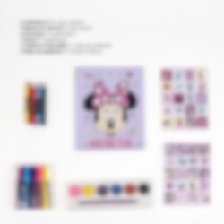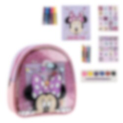 Kreativer Mal- und Bastelspaß für unterwegs mit Minnie Maus! Dieser rosa Rucksack ist prall gefüllt mit allem, was kleine Künstlerinnen brauchen: Filzstifte, Wasserfarben, Sticker und Malblöcke. Perfekt für Reisen, als Geschenk oder einfach zum kreativen Austoben.