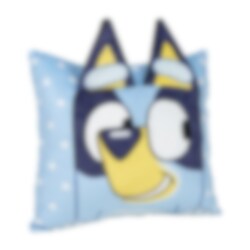 Stylisches Dekokissen mit süßem Bluey-Motiv und abstehenden Ohren. Perfekt, um Sofa oder Bett als charmantes Dekoelement aufzuwerten. Das Kissen hat eine Größe von 30 x 30 cm und besteht zu 100 % aus Polyester.