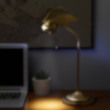 Kreieren Sie eine magische Atmosphäre im Raum mit dieser stilvollen Schreibtischlampe, die den ikonischen Goldenen Schnatz aus Harry Potter darstellt. Die Lampe ist 40 cm hoch und verfügt über drei verschiedene Helligkeitsstufen und Lichtmodi.