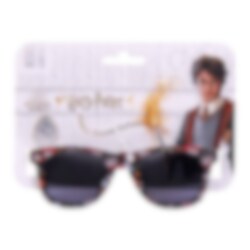 Premium Sonnenbrille für Kinder mit schönen Details und Motiven aus Harry Potter. Das Gestell der getönten Gläser zeigt Chibi-Motive von Harry, Hermine, Ron, Hedwig und Anderen.