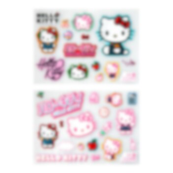 32 niedliche 3D-Sticker mit verschiedenen Hello Kitty Motiven. Die Sticker bestehen aus Vinyl, lassen sich leicht abziehen und wiederverwenden. Sie eignen sich perfekt zum Verzieren von Handy, Laptop, Tablet oder anderen persönlichen Gegenständen. Die Sticker sind auf 2 Bögen verteilt und haben Größen von ca. 2 bis 8 cm.