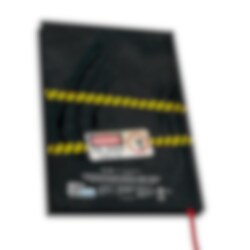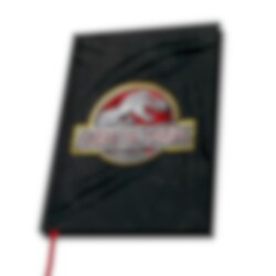 Notizbuch in schwarzer Farbe mit stilvollen Jurassic Park-Motiven.