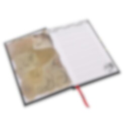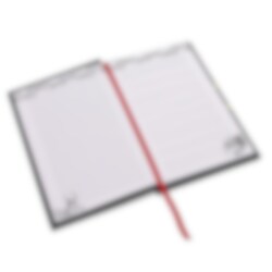 Das Notizbuch kommt mit einem roten Lesezeichen und 180 linierten Seiten. Das Buch ist im A5-Format (21,7 cm hoch und 15,5 cm breit).