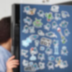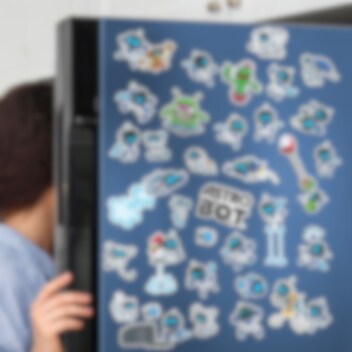 34 coole Kühlschrankmagnete mit verschiedenen Motiven aus Astro Bot, perfekt, um Ihren Kühlschrank zu dekorieren! Verwenden Sie sie, um wichtige Notizen zu befestigen oder der Küche einen spielerischen Touch zu verleihen. Die Magnete sind auf 3 Bögen verteilt und variieren in der Größe von 5 bis 11 cm, was viele kreative Gestaltungsmöglichkeiten bietet.