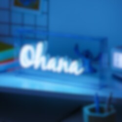 Bringen Sie mit dieser charmanten Neon-LED-Lampe, die das Lieblingswort „Ohana“ von Stitch zeigt, stimmungsvolles Licht in Ihr Zimmer. Die Lampe leuchtet in einem schönen Blauton und ist perfekt für alle Stitch-Fans geeignet. Sie kann auf einem Tisch platziert oder an der Wand montiert werden, um eine gemütliche und einzigartige Atmosphäre zu schaffen.