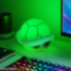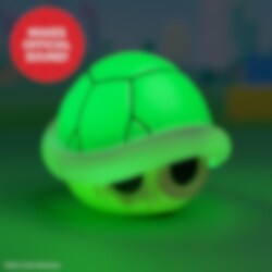 Coole Lampe mit Darstellung einer grünen Muschel aus dem Spiel Mario Kart aus der Super Mario Bros.-Reihe. Die Lampe ist etwa 12 cm hoch und wird von 2 Batterien angetrieben. AAA-Batterien sind nicht im Lieferumfang enthalten. Drücken Sie die Lampe, um die ikonischen Geräusche zu hören.