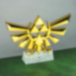 Sehr schöne Lampe, die das Hyrule-Crest mit goldenem Finish aus der Zelda-Spieleserie von Nintendo darstellt. Ein herausragendes Geschenk für den Lampensammler und Zelda-Liebhaber.