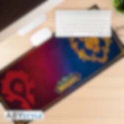 Exklusive Mauspad von hoher Qualität mit stilvollem Motiv von Alliance und Horde Logos aus World of Warcraft. Peppe deine Gaming-Ecke mit diesem auf oder warum gibst du es nicht als Geschenk an jemanden, der World of Warcraft liebt.