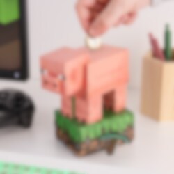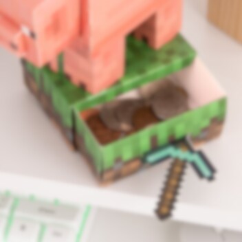 Sparen Sie auf kreative und spielerische Weise mit diesem tollen Minecraft-Bauset! Das Set enthält alles, was Sie brauchen, um ein süßes Schwein zu basteln, das gleichzeitig als Spardose dient – ganz ohne Schere oder Kleber.