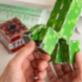 Der Creeper ist ca. 22 cm hoch und die TNT-Blöcke etwa 6 cm groß. Die geschätzte Bauzeit beträgt rund 30 Minuten.