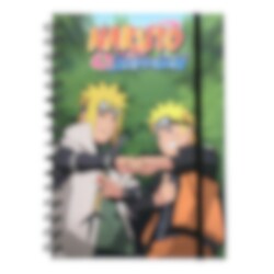 Das Notizbuch im A5-Format zeigt Naruto und Minato auf dem farbenfrohen Cover, hat eine Spiralbindung und linierte Seiten. Mit elastischem Band zum sicheren Verschließen, bereit für jedes Abenteuer!