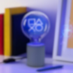 Lassen Sie die ikonischen Symbole von Playstation den Raum mit einem stilvollen blauen Schimmer erhellen! Diese moderne Tischlampe im Glühbirnendesign zeigt das klassische Playstation-Tastenmuster und eignet sich perfekt als Stimmungsbeleuchtung in der Gaming-Ecke, auf dem Schreibtisch oder als cooles Detail im Kinderzimmer.