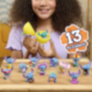 Öffnen Sie das ananasförmige Ei und entdecken Sie, welche Figur sich darin verbirgt! Jedes Ei enthält eine ca. 5 cm große Stitch-Sammelfigur aus Disney Lilo & Stitch in lustigen Stilen und mit kreativem Zubehör.
