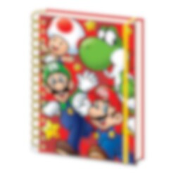 Das Notizbuch im A5-Format hat ein rotes Cover mit Mario, Luigi, Yoshi und Toad sowie ein elastisches Band zum Verschließen. Ideal für Schule, Freizeit oder als Geschenk für alle Super Mario-Fans.