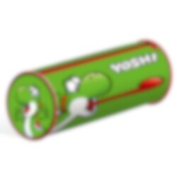 Das farbenfrohe Mäppchen in Grün und Rot zeigt Yoshi mit seinem typischen Lächeln und der langen Zunge, bereit für das nächste Abenteuer im Klassenzimmer. Die runde Form bietet viel Platz für Stifte, Radiergummis und kleine Schätze.