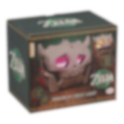Coole Lampe in Form einer Bokoblin-Kiste aus The Legend of Zelda: Breath of the Wild, komplett mit den ikonischen Soundeffekten, wenn sie geöffnet wird. Die Lampe leuchtet in zwei Farben, Lila und Gelb, und ist 14,4 cm breit. Sie wird von 3 AAA-Batterien betrieben (nicht im Lieferumfang enthalten).