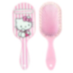 Diese niedliche Haarbürste mit Hello-Kitty-Motiv wird schnell zum stylischen Teil der Pflegeroutine. Der Griff ist rosa-weiß gestreift und mit einem Hello-Kitty-Aufdruck versehen, das Bürstenfeld ist rosa mit weißen Borsten. Sanft zum Haar und ideal für den täglichen Gebrauch. Die Haarbürste ist ca. 22 cm lang.