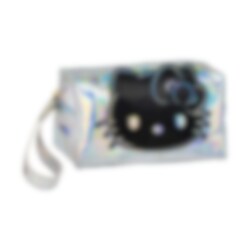 Diese glänzende Kosmetiktasche mit Hello Kitty ist ein stilvolles und charmantes Accessoire für jede Tasche! Die schimmernde silberfarbene Oberfläche kombiniert mit Hello Kittys schwarzem Gesicht und glitzernder Schleife sorgt für einen modernen und verspielten Look. Perfekt für Make-up, Haarschmuck oder kleine Utensilien.