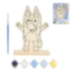 Gestalten Sie ein Kunstwerk Ihrer Lieblingswelpe mit dieser niedlichen Bluey-Holzfigur zum Bemalen. Das Set enthält Farben und Pinsel, sodass der Bastelspaß sofort beginnen kann. Eine kreative Aktivität für kleine Bluey-Fans, die es lieben, ihre eigene bunte Version des verspielten Hundes zu gestalten.