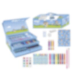 Verwandeln Sie jeden Tag in ein kreatives Abenteuer mit diesem Mal- und Zeichenset von Bluey, inspiriert von den liebenswerten und lustigen Figuren Bluey, Bingo, ihrer Familie und Freunden.