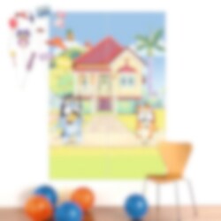 Bluey - Wanddekorationen 6-teilig enthält alles, was Sie benötigen, um eine festliche Atmosphäre zu kreieren. Das Set enthält 4 große Wanddekorationen (141 x 203 cm), die einfach an der Wand befestigt werden können, sowie 2 lustige Foto-Requisiten. Perfekt, um jede Veranstaltung extra speziell und unvergesslich für alle Bluey-Fans zu machen.