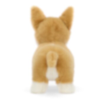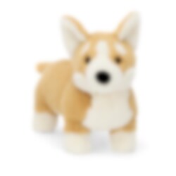 Ein lebhafter und eleganter kleiner Corgi mit wunderbar weichem, warmem hellbraunem Fell mit schönen weißen Mustern und lustigen weißen Augenbrauen, kurzen Beinen mit cremeweißen Pfoten, großen spitzen Ohren und einer tiefschwarzen Nase. Betty mag vielleicht nicht königlich sein, aber sie ist genauso elegant, loyal, klug und fantastisch wie jeder verwöhnte Hund und kennt immer die besten Wege während des Spaziergangs. Hergestellt aus 100 % Polyester und kann bei Bedarf von Hand gewaschen werden.