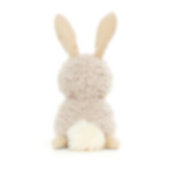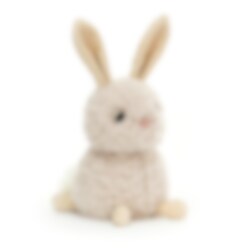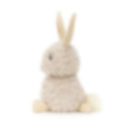 Ein rundes und flauschiges kleines hellbeiges Kaninchen mit träumerischen Augen, sanften kleinen Pfoten, einem eleganten flauschigen Schwanz und langen, weichen, spitz zulaufenden Ohren. Dieses süße kleine Kaninchen mit seiner rosa Nase ist ein süßer Begleiter oder Kuschelfreund. Von Hand waschen und bei Bedarf aufgehängt oder auf dem Boden liegend trocknen.