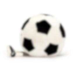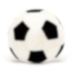 Dies ist ein lustiges und sportliches Kuscheltier in Form eines fröhlichen Fußballs mit wunderbar weichem Material im traditionellen Muster mit Fünfecken in Cremeweiß und Schwarz. Eine charmante Figur mit lustigen Beinchen in weißen Kniestrümpfen und stylischen Fußballschuhen aus Wildlederimitat mit gestickten Nieten und anderen Details. Ein toller Freund oder Maskottchen für jeden Fußballfan und perfekt zum Zelebrieren, wenn Ihre Lieblingsmannschaft ein Tor schießt. Wenn es schmutzig wird, kann es in der Maschine bei 30°C im Schonwaschgang gewaschen und zum Trocknen aufgehangen werden.