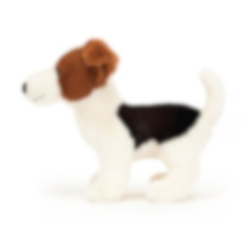 Lernen Sie Albert kennen - einen fröhlichen und bezaubernden kleinen Jack Russell mit weichem, cremeweißem Fell und markanten, schwarzen und braunen Flecken. Dieses kuschelige Plüschtier mit seinen süßen, niedlichen Ohren und seinem fröhlichen, kleinen Schwänzchen strahlt eine Begeisterung aus, die fast unwiderstehlich ist. Ein wunderbar weicher und treuer Freund, der Ihnen endlose Freude und Trost bereiten wird. Er ist immer bereit für Abenteuer, Spiele und Kuscheln, was diesen Hund zu einem perfekten und langlebigen Begleiter für alle Altersgruppen macht. Kann bei 30 °C im Schonwaschgang in der Maschine gewaschen und bei Bedarf zum Trocknen aufgehängt werden.